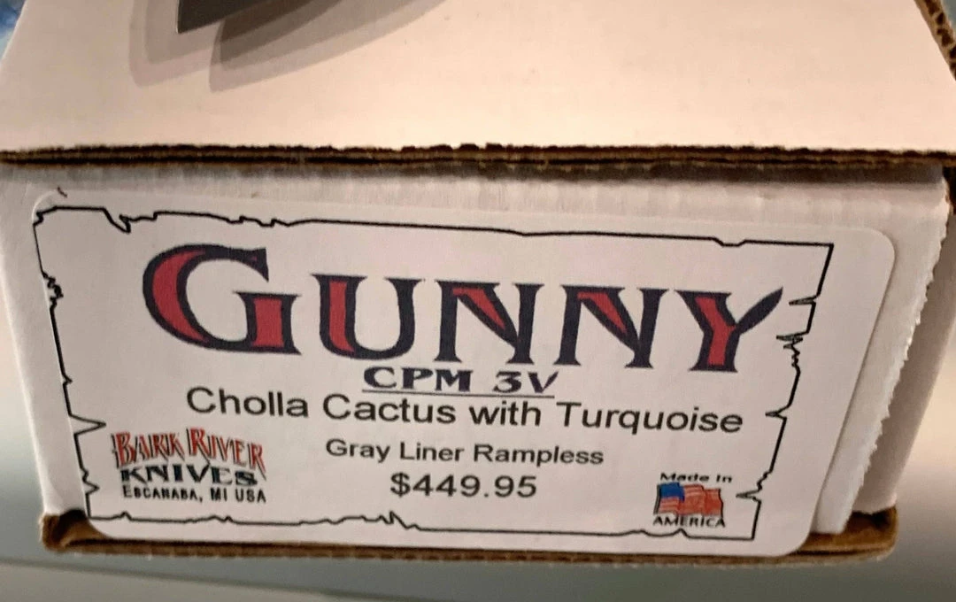 *** Only 1 Available – This is a unique Bark River Gunny in premium CPM 3V steel with cholla cactus handles with beautiful inlayed turquoise with gray liners. Review pictures as this handmade and unique knife shown is the knife you’ll get ***
