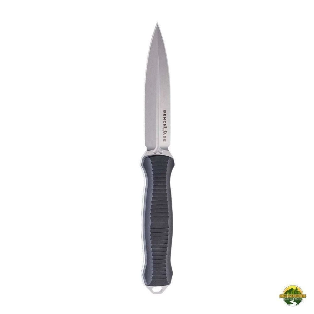 The Benchmade 133 Fixed Infidel is a full-tang tactical fixed blade designed after the iconic Infidel out-the-front knife. Its double-edged blade is made from resilient D2 tool steel. Grooved, black anodized aluminum scales provide absolute grip security. Includes a Tek-Lok compatible Boltaron sheath.