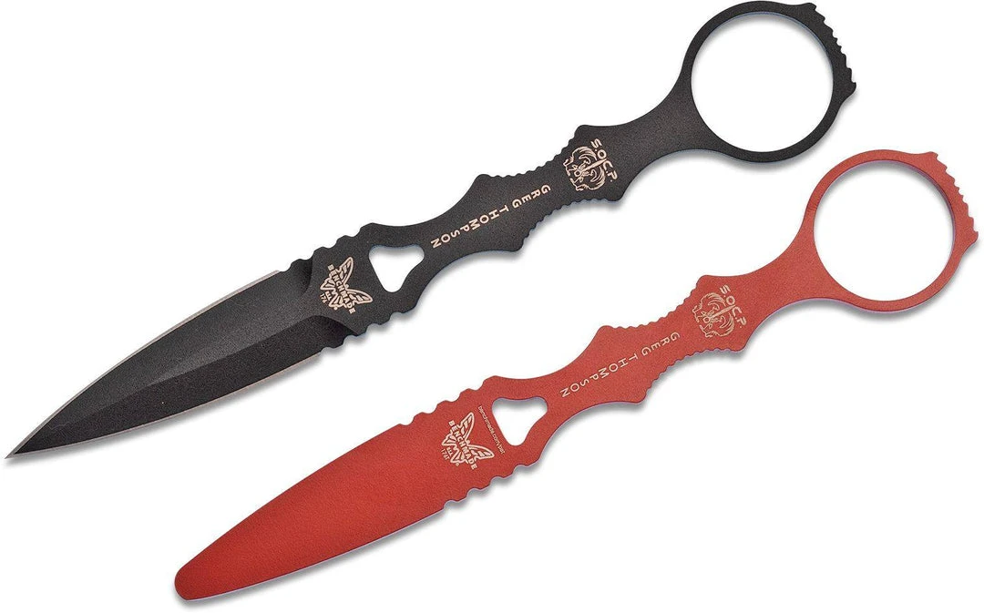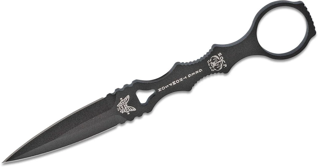 Benchmade 176BKSN SOCP Dagger is a Greg Thompson design. He is the creator of the Special Operations Combatives Program (SOCP) and has years of training and experience to draw from. This skeletonized dagger has a finger loop that makes it easy to deploy and use in quick order. It is made from 440C stainless steel with a black finish. The 176 SOCP Combo includes a sand colored sheath with clip and lanyard as well as a trainer for you to gain the confidence and experience.