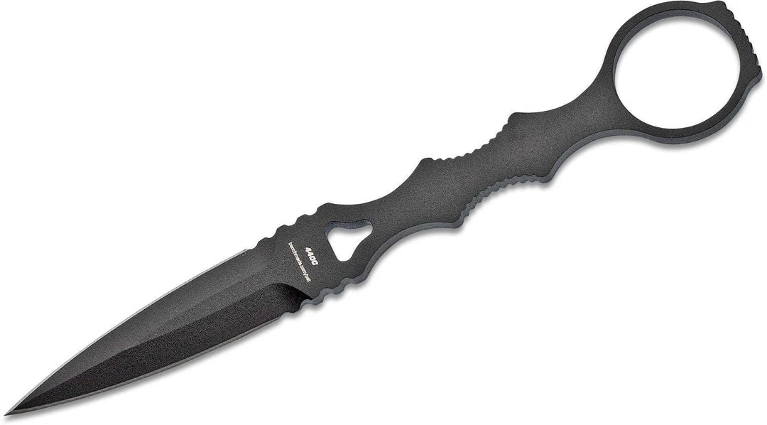- Skeletonized dagger or trainer fixed blade feature 440C blade steel