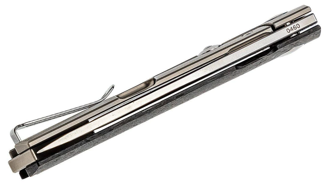 The Boker Plus Kwaiken Compact by Lucas Burnley, designed as a titanium frame lock, is shorter and considerably lighter than the standard version, but still convinces with almost unchanged grip strength. The front handle scales and the spacer with integrated lanyard hole are made of wild carbon fiber, while the rear scale is made of titanium and has diagonal texturing. The finely satin-finished blade in D2 opens as usual on ball bearings via flipper, a Hinderer Lock-Stop acts as overstretch protection for the lock. With convertible deep carry clip (tip-up/l-r) and high-quality nylon case for storage.