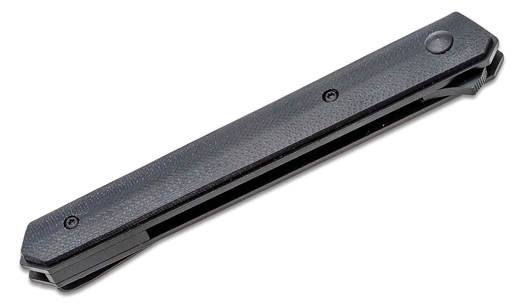 The Boker Plus Kwaiken Air designed by Lucas Burnley adds an elegant lightweight variant to the dynasty of the successful Kwaiken family. With a straightforward and practical shape, the modern pocket knife has become a true icon. The clean lines and slim design have been optimized again in this model for uncompromising weight reduction, although the knife still holds the entire blade when closed. The flipper ensures intuitive operation and additional safety, while the liner lock securely locks the ball-bearing blade made of black-coated VG-10. The lightness of the Gentleman Folder is underlined by the handle scales made of resistant G10, which give the all-black knife a tactical look. The knife is supplied with a lanyard hole, a detachable deep-carry clip (tip-up/r), and a high-quality nylon pouch for storage.