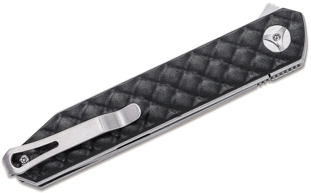 The BlackFox Reloaded impresses with its simple and elegant lines. The slender blade with satin finish is made of 440C stainless steel, opens with flipper and locks with liner lock mechanism. The G10 handles on stainless steel plates are provided with an elaborately milled textured structure. With clip (tip-up).