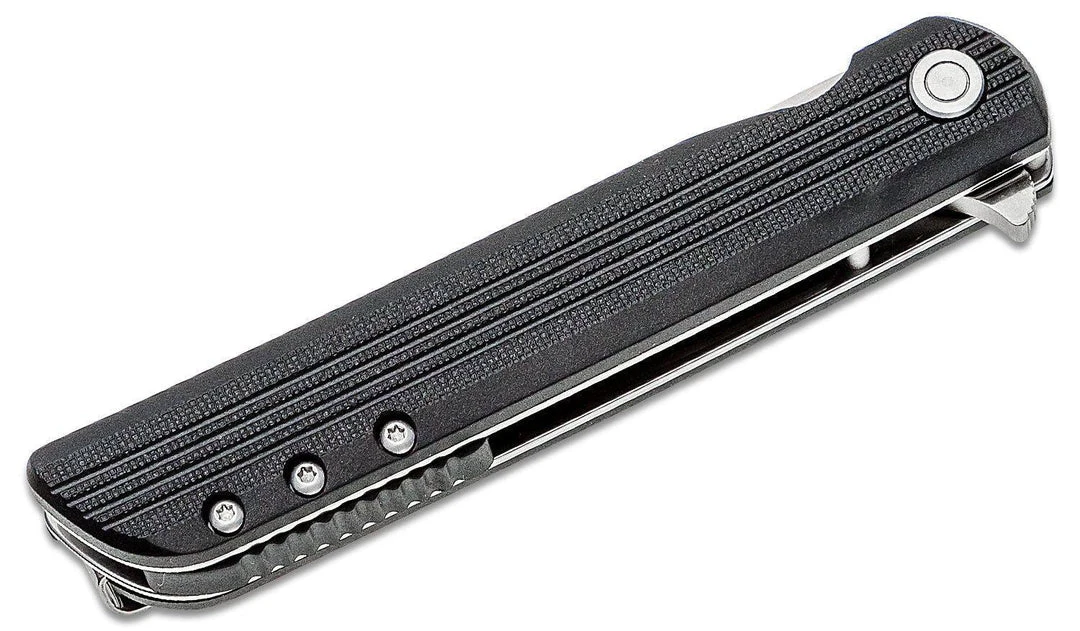 Designed by Matthew Lerch of Sussex, Wisconsin, the LCK + is designed with Matthewβs signature style: functional art. With a sleek, linear design, the formidable drop point stainless steel blade meets the glass-reinforced nylon handle in what looks like a nearly seamless transition. The grooves on the handle elevate the grip in rain, mud, and grease. Built with Assisted Opening, simply nudge the blade open part-way and the innovation activates, snapping it open at super high speed. The IKBS ball bearing pivot system makes for a smooth rotation and a liner lock keeps it solidly in place.