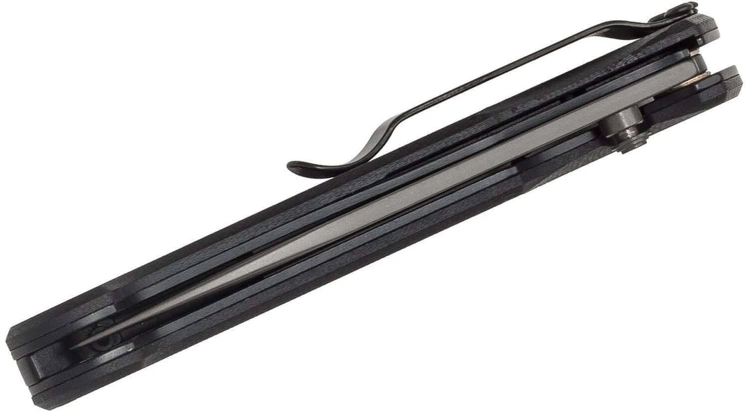 The frame uses our rigid InterFrame build with stainless steel liners, one locking liner, and layered, textured G10 scales for exceptional grip. The deep finger choil and pommel fit your palm nicely. Finally, the flat cross-section makes for a comfortable in-pocket carry.