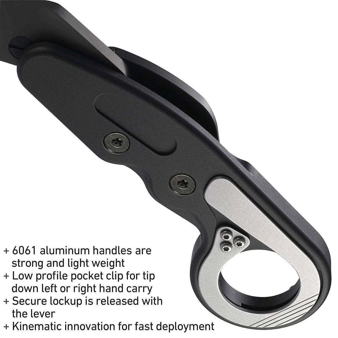 The opening mechanism is pulling the folder into the future whether itβs ready or not. Thumb pressure on the upper crossbar sets the chain reaction in motion, causing the blade to lunge to action while youβve got a firm grasp on the handle. Itβs crafted of aircraft-grade 6061 aluminum for supreme toughness. In true Joe fashion, the pocket clip is also a worldβs firstβsitting almost completely flush with the handle and likewise activated with light thumb pressure.