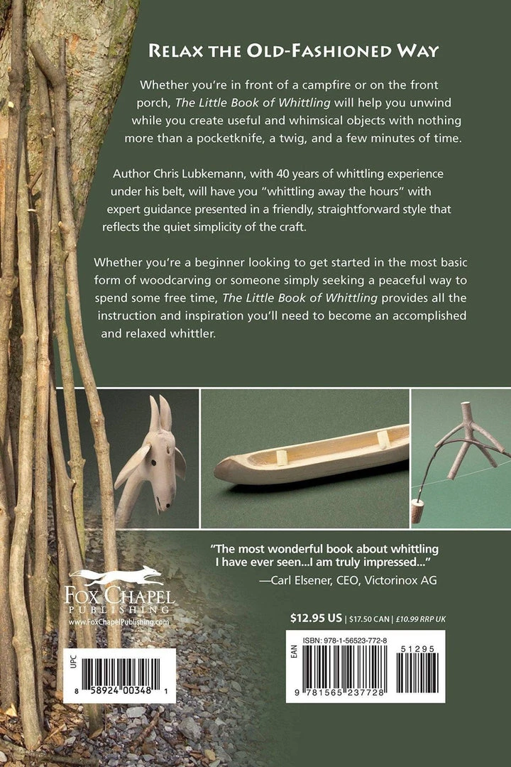 Author Chris Lubkemann, with 40 years of whittling experience under his belt, will have you “whittling away the hours” with expert guidance presented in a friendly, straightforward style that reflects the quiet simplicity of the craft.