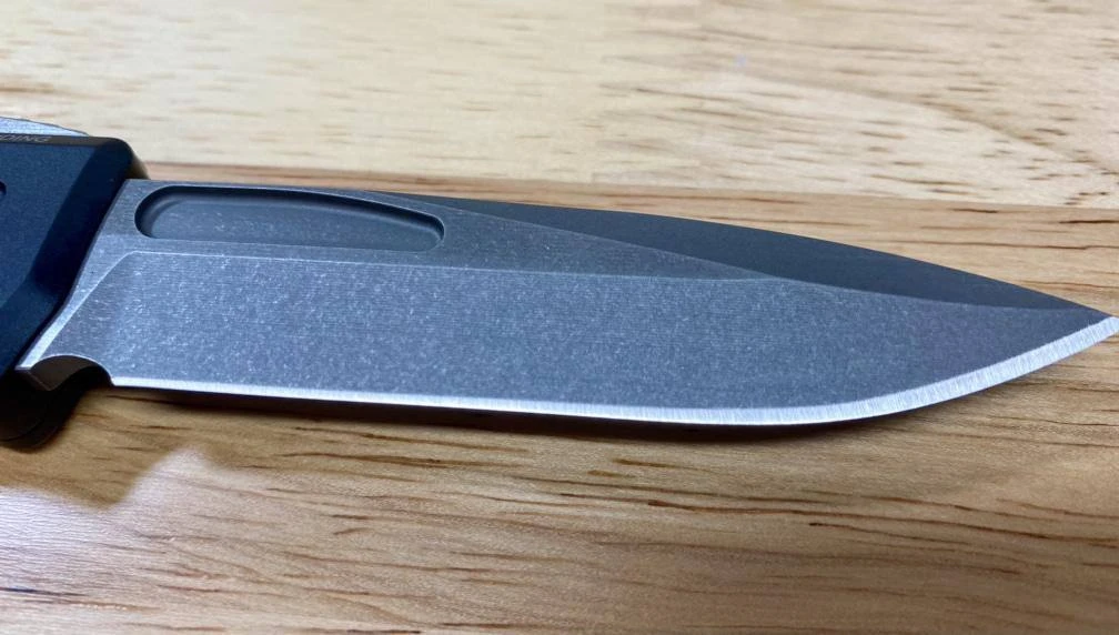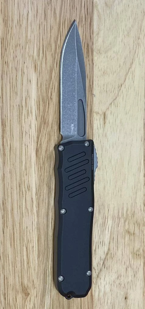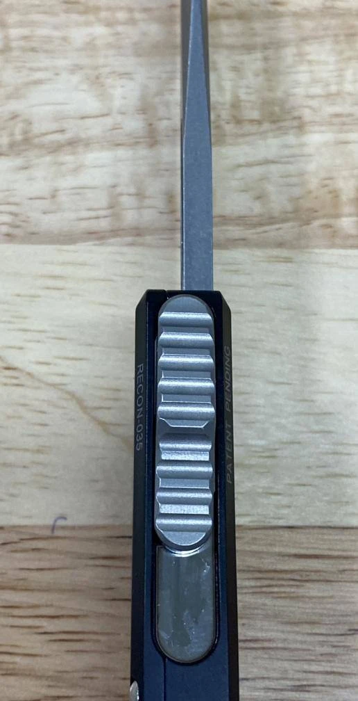 The Guardian Tactical Recon-035 sets the industry standard for OTG Automatics a lot higher.Β With its patented OTF mechanism, opening and closing this blade is significantly smoother and very strong.Β Their new locking mechanism doesn’t touch the blade in motion thereby reducing friction and wear.Β The thumb slide utilizes a steel plate and ceramic balls to eliminate typical OTF wear on the aluminum handle.
