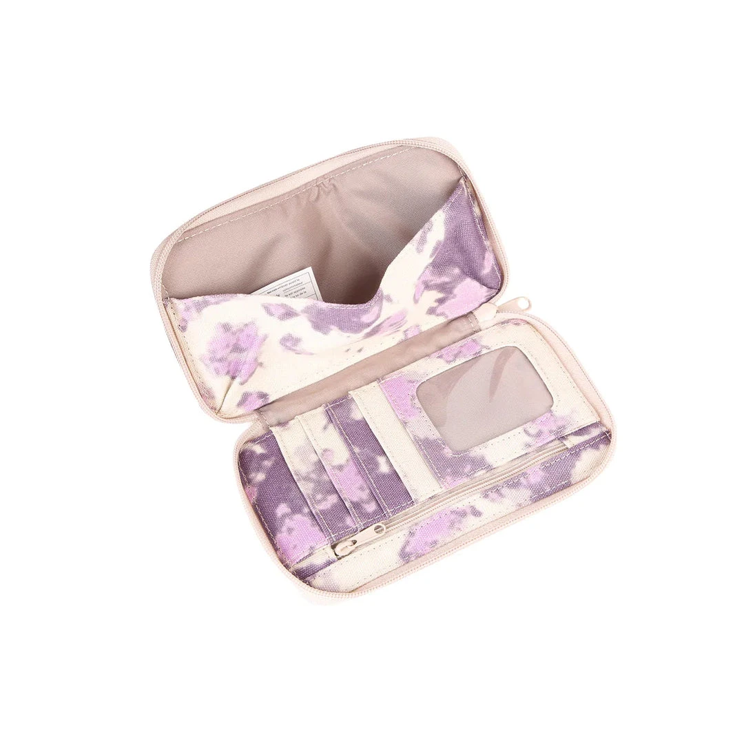 This cross body bi-fold wallet case features a fixed rope shoulder strap that can detach with metal spring hook hardware, one main compartment with zip closure, internal zip pocket and multiple internal cash, card and ID slots. It’s go time!