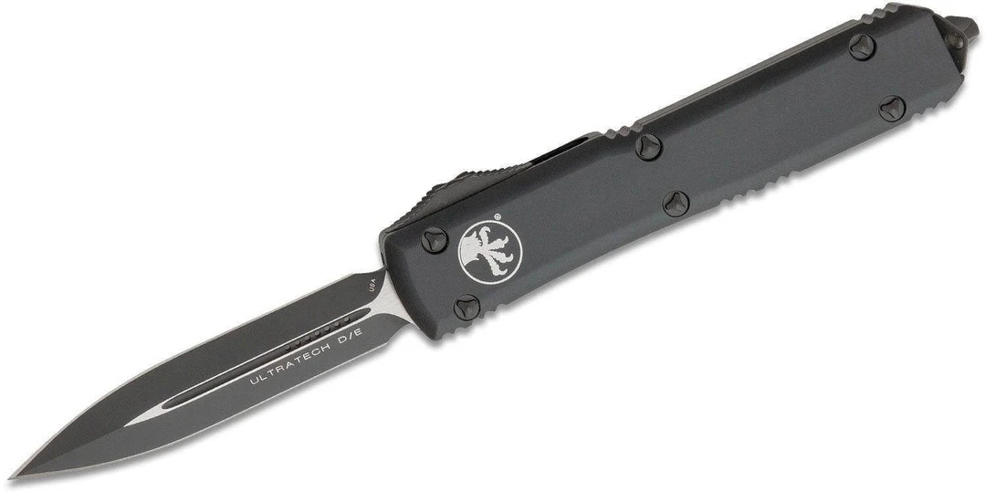 Microtech 122-1T Ultratech Tactical OTF Knife 3.46″ Black Double Edge Dagger Blade, Black Aluminum Handle