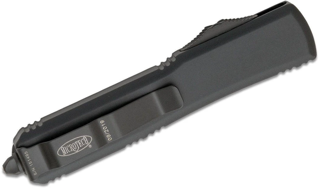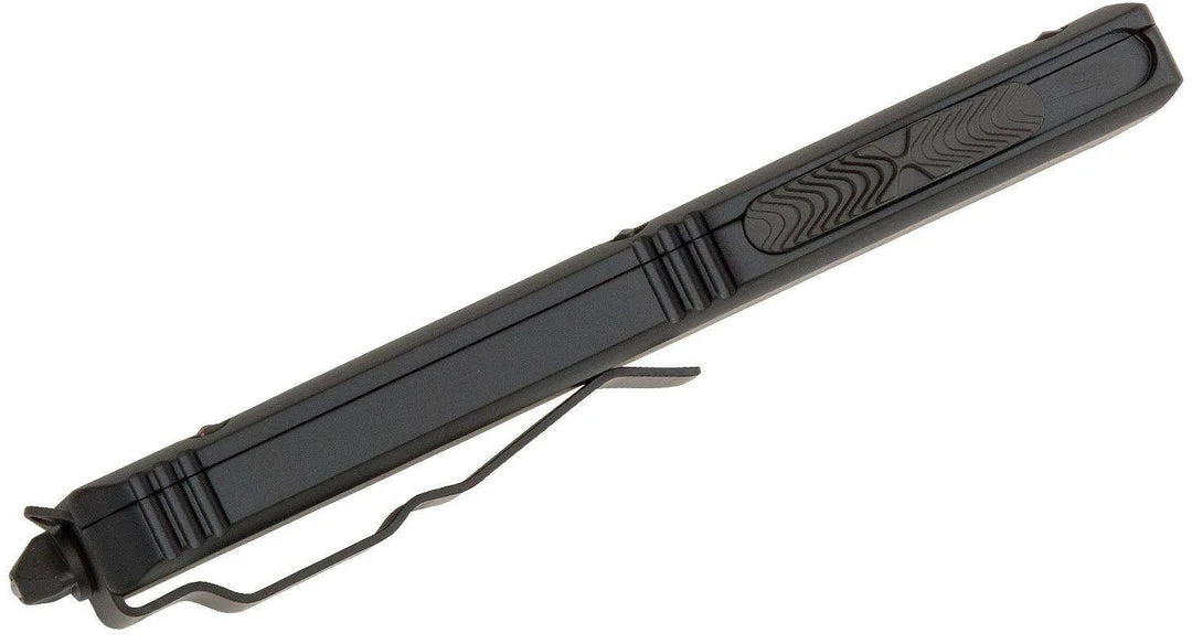 The Ultratech, will forever set the standard for all out-the-front knives. Ultratech is Microtechβs original dual action out-the-front knife, and has been the foundation of their entire OTF line. Over the years, it has gone through several modifications, each time becoming more efficient and reliable. This version has the improved contoured handle with texturing thumb slide for more positive purchase. The Ultratech’s spring remains in an “at rest” position at all times except when deployed. This ensures that the compressed spring will not become fatigued, assuring users that when the knife is fired, it will operate effectively. Ultratech can take many different forms; it can be topped with a standard machined aluminum top or a piece of carbon fiber. The Ultratech’s light weight, one handed open and close action, slim shape, and scalpel sharp blade make it a one of a kind knife, only available through Microtech. This knife has proven time and again that it can withstand any obstacle. Only time will tell what the next step will be for the Ultratech series.