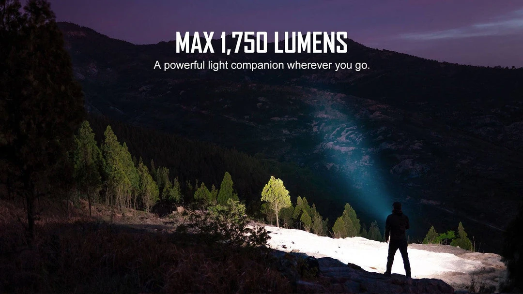 - Powerful Beyond Size: Max 1,750 lumens, 220-meters of throw, and 45-day of runtime.