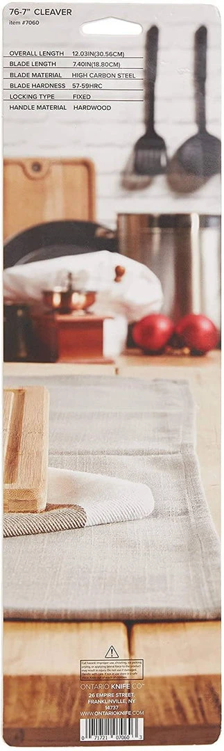 The Ontario Old Hickory 76-7″ Cleaver features a plain edge 7-1/2″ 1095 Carbon Steel Blade. The Old Hickory Cleaver blade features a flat bevel, brushed finish and a Rockwell Hardness 53-58 HRC. The 76-7″ Cleaver features a brown hardwood handle with brass compression rivets. Overall, the Old Hickory 76-7″ Cleaver is 12″ in length. This Cleaver is made in the USA.