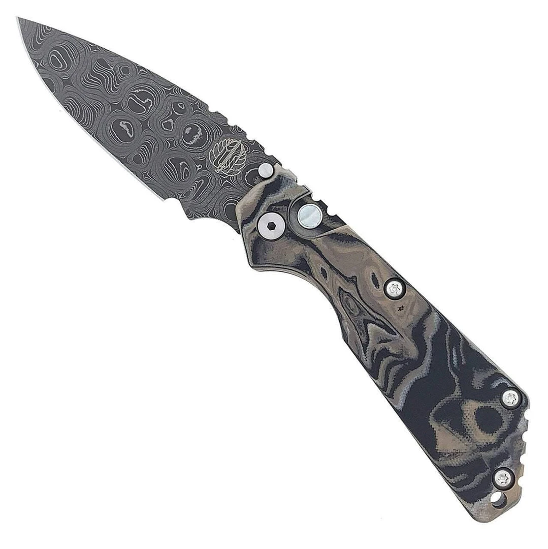 Pro-Tech Strider SnG Custom Auto Camo G-10 Damascus Blade Pearl Button.
