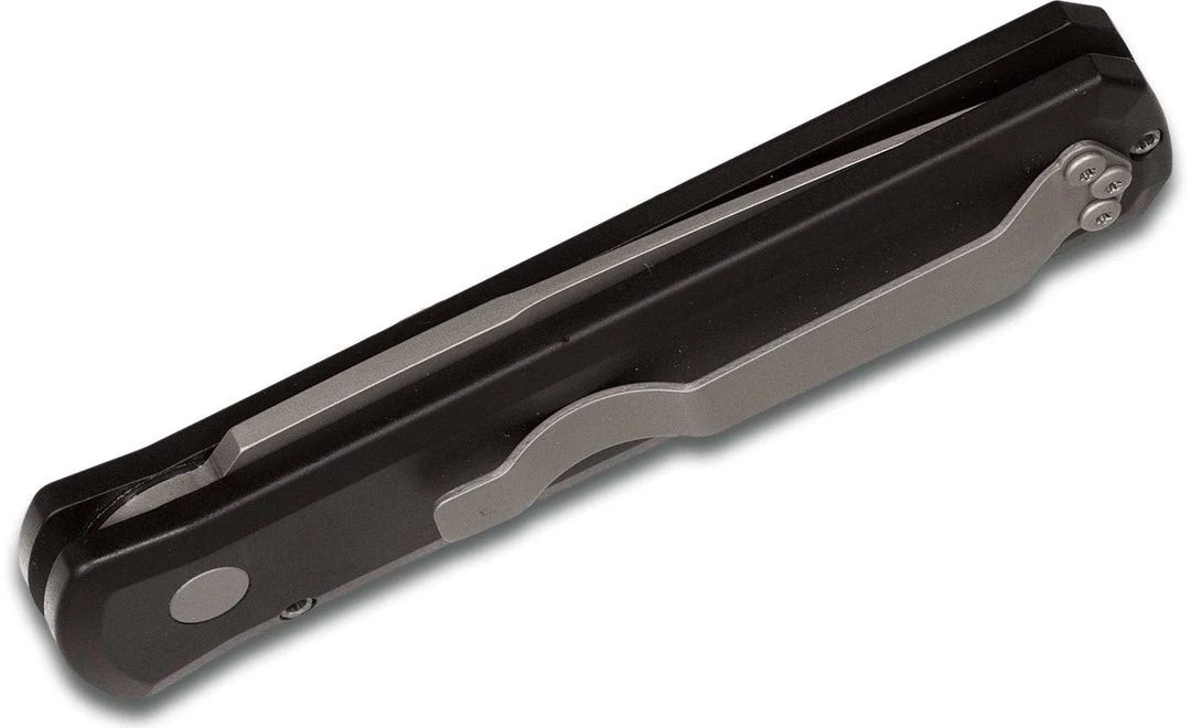 Protech Godson has a bead blast finished 154-CM blade with a plain edge. The handle is solid black anodized T6-6061 aluminum. Bead blast finished tip-up pocket clip for easy carry.