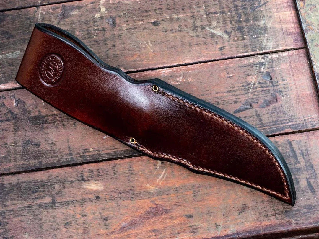 Born with a passion for the great outdoors and touched with passion of the old west comes our new fixed blade hunting/utility knife The Emmett. Released just in time for fall hunting it will prove to be your most trusted hunting companion ready for any tasks put before it. The pedigree for The Emmett comes from the popular FXM but as those familiar with the FXM will note that he is a completely different character. The stout .165β thick blade of CPM20CV starts at the handle in a wide 1.25β perfect for that slicing grind angle. The blade shape is a long βBowieβ style clip with a extra concave thumb rest set in the perfect spot for those hard push cuts. The clip point style front end allows for those fine cuts utilizing the nimble tip of the blade. The handle follows the style of the iconic XM-18 series of folders with its very ergonomic profile that begs this knife to be used for long periods of time. With the addition to the Emmett line we added contoured handles that fill out your grip comfortably while adding eye popping appeal. And finally finishing off the grip is perfectly situated fine thumb jimping ensuring a solid grip while using the knife in a fencing grip.Β For the Emmett we again chose Woodland Harness for a exceptional leather sheath. The Emmett is that knife and hunting companion that is worthy of handing down through generations of outdoor enthusiasts!