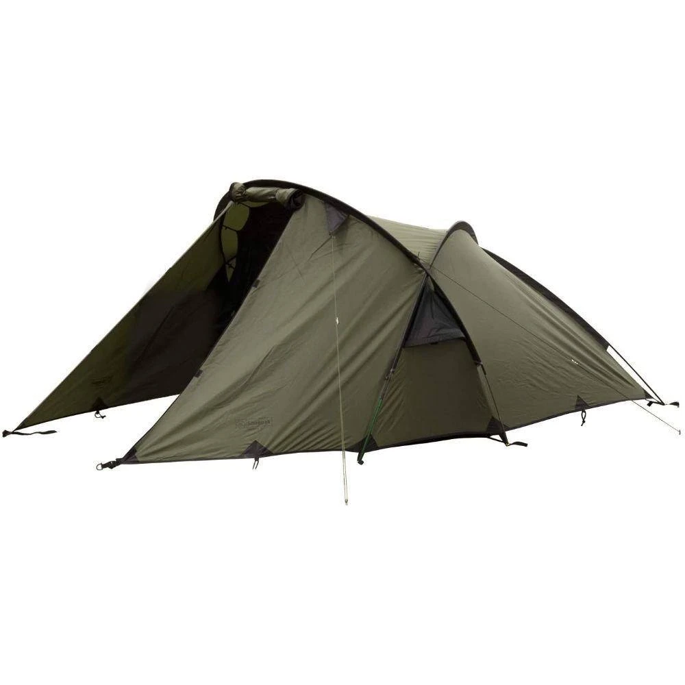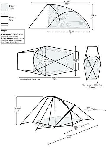 The Scorpion 2 by Snugpak ® is a two-person base camp and expedition tent, when a semi- permanent camp is required. The Scorpion design is a Fly-first pitch tent that allows quick and easy set-up using an opposing pole design, protecting you all year round from severe weather, and can be pitched in difficult and remote areas. A tried and tested favorite of Mountaineers, Climbers and Campers, the Scorpion 2 has an impressive floor space, creating ample room for two people in a top-toe sleeping arrangement also incorporates an ample front porch for storing equipment. In an emergency the Scorpion 2 can accommodate six people sitting.