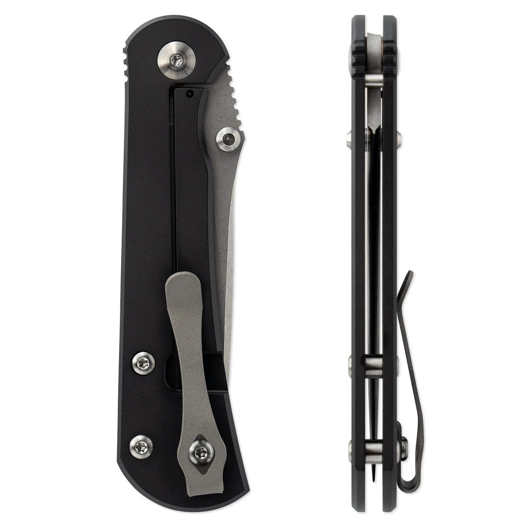 With an extra-high bevel grind that provides plenty of sharpening life, this frame lock folding knife uses premium 6al-4v titanium, precision-machined handle scales with a CPM S35VN blade. We custom-make every screw and back spacer in our manufacturing facility, also using 6al-4v titanium. The blade rides on phosphor bronze washers, giving it a smooth, controlled folding action, and our signature deep carry titanium pocket clips allow the knife to sit lower in the pocket for extra comfort when carrying.