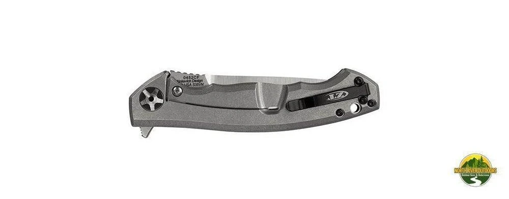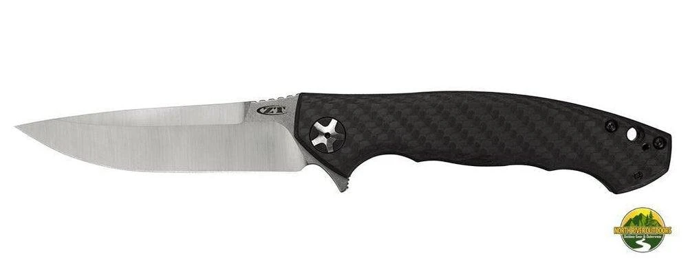 To make this amazing knife more readily available, ZT has created a new-for-2015 version based on the originalβs streamlined form and high-performance function. The 0452CF is the same size as the original 0454, but with a carbon fiber front scale and S35VN dual-finished blade. S35VN sharpens to a razor edge, holds it, and can be resharpened easily. The 0452CF opens as smooth as butter with the KVT ball-bearing opening system and built-in flipper. A titanium frame lock with hardened steel lockbar insert ensures solid lock up